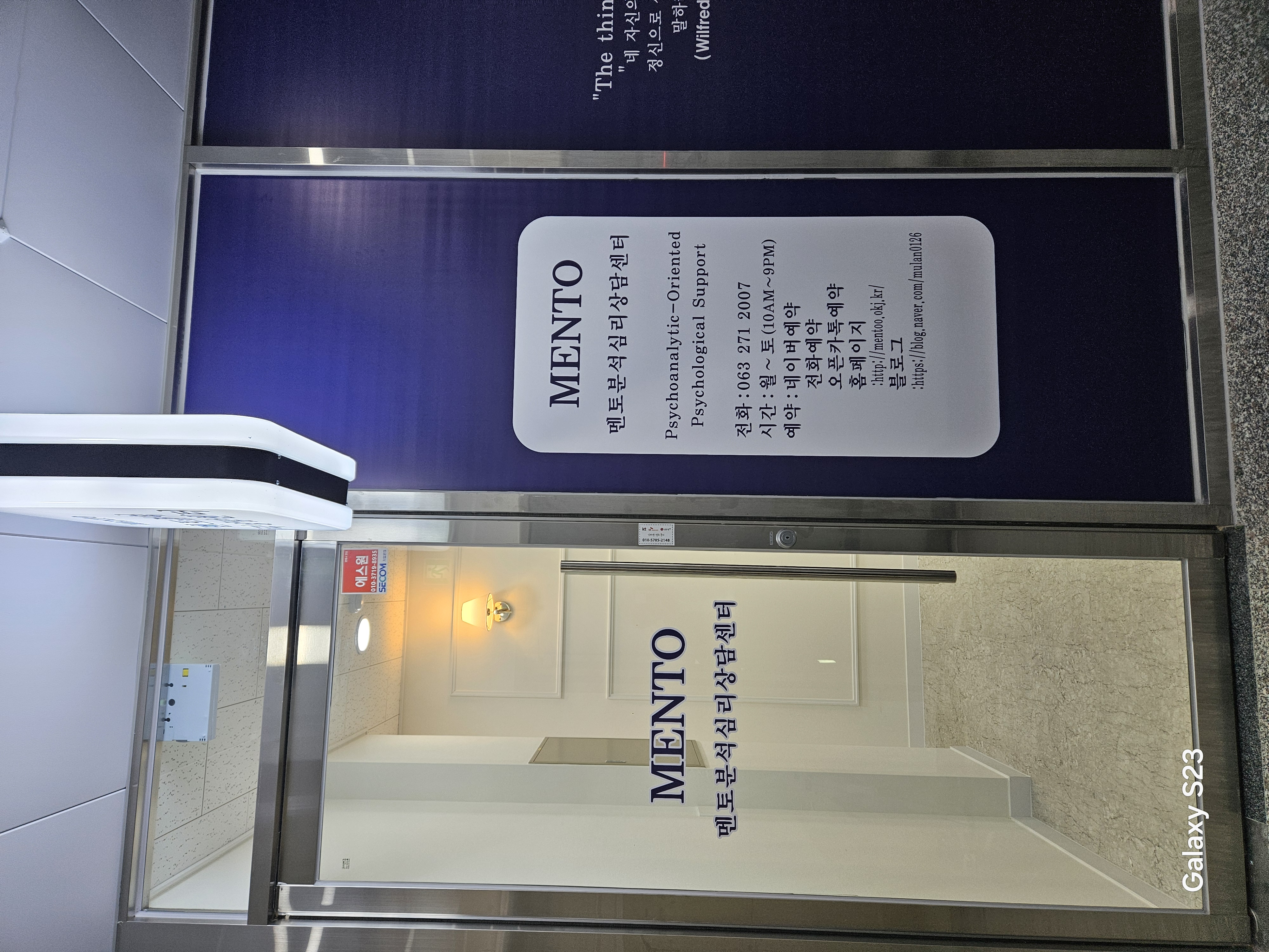 상호 : 멘토분석심리상담센터 I 대표 : I 주소 : 전북특별자치도 전주시 덕진구 만성중앙로 54-33, 501호